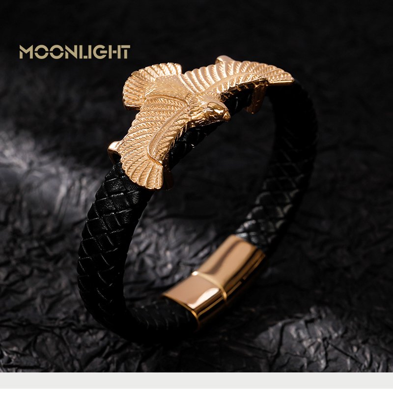 Moonlight Leather Braided Eagle Bracelet In Gold (Copy) (Copy)
